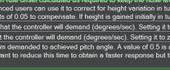 Компенсацию высоты поставил максимум. Все равно теряет высоту в поворотах. Уже и угол наклона ограничил до 35 градусов.