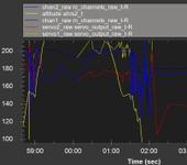 Разбил свой самолет в Мануале, проходил в бреющем полете, скорость 21 м/сек относительно земли, высота 8 метров, угол - 19.5 градусов, в нужный момент потянул ручку РВ на себя, но самолет никак не отреагировал, RSSi в норме, в CHin отображается соответствующее потянутой ручке на себя PWM, а в CHout значение отличается.