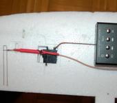 Можно монополь сделать, но в виде J-антенны согнутой под 90 градусов, антенна несимметричная и симметрирующих устройств не надо. Вот пример на 868 МГц, для тестов воткнута в кусок крыла, но предполагается размещение внутри фюзеляжа. В целом участок согласования U можно размещать под любым углом относительно рабочей части (~1/2 l). Запирающий стакан желателен, но не обязателен. Материал омедненная сварочная проволока.