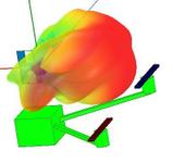 Моделирование ДН от положения антенны на коптере, один из вариантов. Модель коптер 120 см рама алюминий, пропеллер 14 дюймов карбон(наиболее близко в модели взят графит). Антенна секторная на 900 МГц.