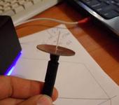За 20 минут до сбора на полёты решил собрать антенку про которую давненько читал(даже не помню где), спаял её чисто на принципе интуиции. Конструкция состоит из обрезка антенки от делинка, стеклотекстолитового диска Ф=33 мм, излучатель оставил с запасом длиной 15,5 мм для последующего подреза ориентировочно до 12,5 мм, но…