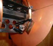 Расчетная частота-1280МГц, количество витков-17, провод сечением 16кв.мм, основа стелотекстолит (отверстия для облегчения конструкции), масса порядка 3-3.5кг.