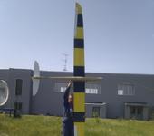 старый добрый JR 40 мГц 😃 Причем на передачу укороченый штырь, что даже хуже стандартной 2м удочки. Тем не менее на дальности до 5 км(сегодняшние полеты) никаких провалов управления не было. Вывел с приемника RSSI правда телеметрия отображает его в попугаях, но на максимальном удалении меньше 2 делений из 4 возможных не было, и то в основном когда планер был в развороте и плоскости поляризации антенн не совпадали. Приемник RS10DS антенна на борту полноразмерный диполь 3.7 метра. С первой маленькой батареей высоты набрать не получилось, зато по аудио вариометру неплохо покрутил термики. Набирал в потоках с 800 до 1400м, без мотора 😃 Прикольная штука планер!