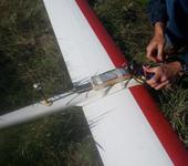 старый добрый JR 40 мГц 😃 Причем на передачу укороченый штырь, что даже хуже стандартной 2м удочки. Тем не менее на дальности до 5 км(сегодняшние полеты) никаких провалов управления не было. Вывел с приемника RSSI правда телеметрия отображает его в попугаях, но на максимальном удалении меньше 2 делений из 4 возможных не было, и то в основном когда планер был в развороте и плоскости поляризации антенн не совпадали. Приемник RS10DS антенна на борту полноразмерный диполь 3.7 метра. С первой маленькой батареей высоты набрать не получилось, зато по аудио вариометру неплохо покрутил термики. Набирал в потоках с 800 до 1400м, без мотора 😃 Прикольная штука планер!
