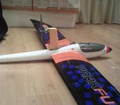 предполагаю, что полный вес будет около 1300 грамм, с оборудованием. Перегружать думаю не стоит(хотя пробовал 1500гр.), ввиду того, что в момент сильных перегрузок крыло сильно сгибается в том месте где установлены серво-машины.
