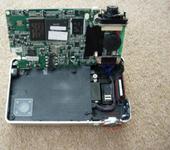 2 фотка: удаляем указаные 2 винта, затем для удобства лучше снять переключатель макро и протектор объектива (стекляшка спереди). Теперь можно раскрыть камеру наподобие книжки. Аккуратно!!! Если не обратить внимания на то, что происходит с ползунком переключателя zoom в момент раскрытия, вы его сломаете даже не заметив этого сразу (что я и сделал). Просто внимательно посмотрите на него и подумайте что с ним будет происходить по мере раскрытия конструкции
