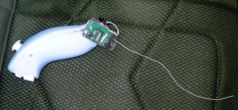 передатчик помешается внутри Нунчак, вот немного старая фотка, такая карманная штучка обеспечивает уверенную связь на несколько км