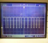 Слева три пачки по 12 PPM импульсов (центральная - целиком). Справа - одна пачка в подробностях. Масштаб по времени 5 мс в клетке справа и 2 мс - слева. Легко видеть, что пачки следуют с периодом 25 мс.