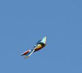 Вдохновила меня модель топикстартера, сделал похожую, правда еще не летал - погода пока не летная, и есть несколько мелких недоделок и неясностей, думаю, в эти выходные состоится первый полет. Материал - потолочка, сосновые рейки, скотч, бальзовые рули на хвостовом оперении.