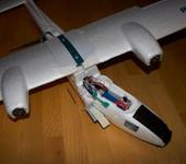 Да, я ж забыл сказать, у меня же Горе! ТвинСтар приложил! Да не, так то фигня, нос отпал. Причина - после маневра стало пропадать управление, его почти перевернуло (а может и ветер), и тутже почти пропало видео и я потерял ориентацию в местных полях. По моему мнению причина была в том, что я загородил собой и управлени и видео. В минусе только нос и два вала движков, похоже газ то я не вырубил в попытке спасти невидимый самолет. Вся система не вырубилась и успешно передавала координаты, до момента отключения батарейки. Фюз я думаю склею, место излома хочу укрепить остатками лопастей от 450. В крайнем случае фюз стоит 34 евро. Крылья, хвост - все цело.