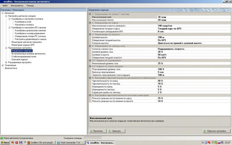 >Народ подскажите хотябы начальные настройки автопилота, боюсь сделать что-то не то, чтоб не угробить самолет.