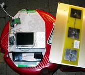 и на земле, сзади этого огромного патча закреплены видеоприемник(AWM635),HDD recorder, LCD monitor, one batt. for all, и видеовыход для очков