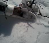 Ударился об дерево видимо знатно. Собирал все в радиусе 50 метров. Сильно пострадало крыло. Треснула пена возле киля. Балка внутри вроде выдержала. Стабилизатор пополам. Трубку алюминиевую согнуло в крыле (выкинул сразу). Мотор улетел с куском фюза в неизвестном направлении. Снег кругом - не нашел. Хорошо фонарь сделал, так бы передатчику и камере кранты. Дома проверил - все работает, фишка вроде тоже. Надо её в полете проверить, но так все отрабатывает. Акумм (НОВЫЙ, 2 цикла всего) разрядился в ноль. Пробую раскачать. 4000 набрал вроде - балансируется пока. Посмотрим.