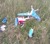 Из летнего. Заменил Tx с 5.8 на 1.3 BevRC и полетел. Скорее, скорее попробовать, не дождался LRS… Чудом удалось спасти Skywalker. На 100 метрах Tx периодически полностью заглушает Turnigy радио. Автопилот принимает управление, но я не понимаю, что на 100 метрах срабатывает FS. Переключился в Manual и чудом, чу-дом в последний момент выровнял крен. Упал с большой скоростью, но практически плашмя. Немного был помят нос. Но живой!