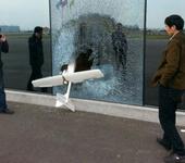 180 Дж это поболе чем кирпичём запульнуть. Если стёкла не калёные то результат закономерен даже на меньшей скорости.