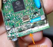 P.S. на днях упала дальность до 50 м.Причина в передатчике.Снял экран а эта индуктивность подгоревшая и в обрыве,выход Рфки звонится на землю.Подозреваю что рф-чип помер из-за кароткозамкнутого клевера… 😦