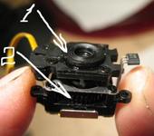 Дальше уже по желанию. В этой ветке есть несколько вариантов подключения к кнопкам, решения проблем с остановкой записи через 30мин. и т.д. Для себя основной проблемой увидел ОГРОМНЫЙ разъем видеовыхода, который к тому же ненадежно фиксируется. Решил заменить. Точнее дополнить, т.к. одним из условий работы было сохранение внешнего вида не пугающего окружающих и полного функционала бытовой камеры.