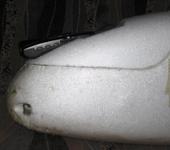 Заметил, что склейка крыльев требует ремонта, спереди трубка, как лонжерон, там всё хорошо, а вот сзади одна сторона появилась трещина между пенопластом и деревянной “нервюрой”. Вроде и клеил хорошо, но то ли перепад температур, то ли мой сегодняшний полёт по-приборам. Опыта мало вслепую, мог и перегрузить. Скорость доходила до 120 км/час.