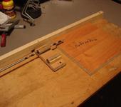 К большому куску ЛСДП саморезами крепим кусок 50*800мм (это будет упор для лобика крыла).Две втулки приклеиваем ПВА на кусок ЛДСП, чтобы выдержать параллельность при склейке между втулками ставим ровный брусок. Полученный кондуктор устанавливаем на большую плиту ЛДСП, ориентируем как нужно и закрепляем саморезами. Кондуктор готов.