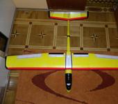 Об этом както я писал было.Чем рассылать на личику лучше опишу с фотками тут.Для того чтобы крылья не ломались при перегрузках я сделал усиление на резинку в передней части крыла не верхнеплан.Узнал я ,установив видеокамеру и направив на это место.При порывах и выходе из пике передняя кромка приподнимается и крыло закручивается.Можно усилить резинку,но пенопласт помнет.А так перед хорошо прижимает.Летает лучше,рысканий нет.Если при выходе из пике крыло приподнимет то заднюю часть только. При этом крыло уж точно не сломается.В камере такого конечно не наблюдалось.Как некоторые пишут-Летает по рельсам.