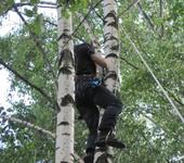 Технология съема: забрасываем верёвку насколько можно выше, поднимаем «спасателя», он перебрасывает верёвку еще выше, еще поднимаем… И так до тех пор пока возможно. Дальше ствол и ветви слишком тонкие, высота большая (страшно), а стрясти «плод» не удаётся – квадрик «всеми лапами» запутался в ветвях… Выхода нет – верхушку пришлось пилить…