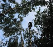 Ситуация: квадрик на самой вершине дерева, дерево в заболоченном овраге. Видимо тянулось к свету - сравнительно тонкое и высокое, зараза… Но валить его жалко.