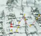 Спасибо всем кто откликнулся. Распечатал карту, пошел на поиски и нашел аппарат!!! Приземлился по тем координатам что на скринах выше. Сейчас лежит размораживается в пакете с силикагелем. Внешне повреждения минимальны. Выломан разъем видеопередатчика и погнута одна посадочная стойка. Батареи не вспухли, но напряжение на них 0.8 вольта на банку.