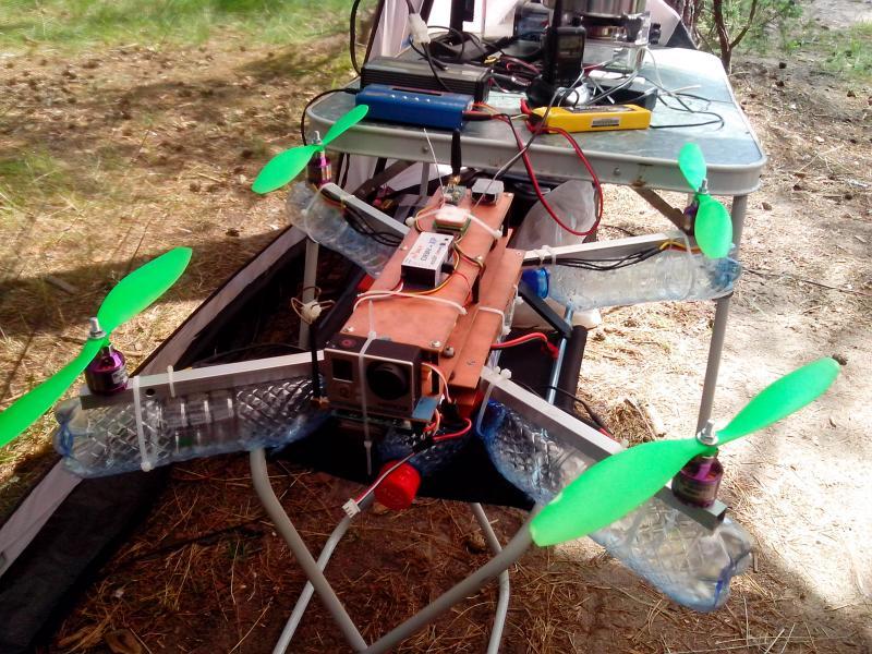 Пробовал, садиться и взлетать, нормально все, но бутылки создают нехилое сопротивление, и коптер колбасит.