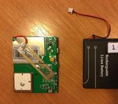 Вынул из корпуса. Разломал корпус и вынул из него антенну. GSM-антенну обернул в прозрачный скотч и закрепил ее на плате со стороны антенны GPS-антенны. Выпаял подпружиненные контакты для подсоединения батареи. На их место впаял попавшийся под руку разъем, которому будет подсоединятся батарея. Достаточно разъема с двумя проводами. На батарею припаял папу этого разъема. Чтобы уменьшить толщину платы выпаял с нее две кнопки и датчик удара.