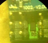 Чуть не домыли, называется. И опять кривая пайка, на этот раз уже их вина. Совсем обленились. Так СМД припаять - талант нужен:). Капнул спирта и вот результат: