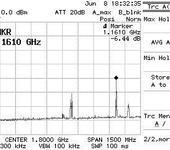 Режим сканирования - максимум. Полоса 1.5 ГГц с центром на 1.8 ГГц (что бы одновременно видеть основную и 2-ю гармонику передатчика).