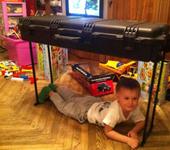 Ноги сам приделывал, но на практике данные конструкция оказалось не устойчивой к ветру из-за своей парусности (при открытой крышке). В итоги всё эксплуатировались на земле без ног.