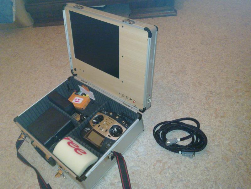Так вот - у меня есть чемодан - в котором вмонтирован монитор 15" с AVвходом, в нем же укладочные места под пульт Футабу, очки Фатшарк, блок антенн с приемниками и т.д. Он весьма громоздкий и тяжелый, поэтому я его на поле редко беру.