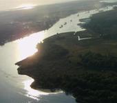 На втором фото видны две вышки ЛЭП. На их месте в XVII веке стояли две турецкие башни (Каланчи), между которыми была натянута цепь. Так турки боролись с казачьими набегами на Азов.