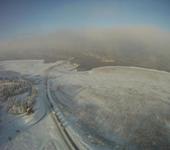 У объектива, на который снимал, угол обзора почти 180 градусов. Я наклоняю фотоаппарат градусов на 20-30 вниз, т.к. сверху все равно коптер мешает обзору, зато надир получается с хорошим перекрытием. А недостающие участки неба приходится либо дорисовывать в фотошопе, либо снимать дополнительные кадры с земли.