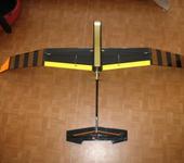 В третий раз выявилась, недостаточная эффективность верт стабилизатора. Задирал морду при повороте в кренах. После уменьшения угла V оперения, со 120 до примерно 100 град, управляется хорошо.