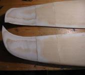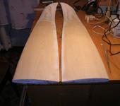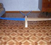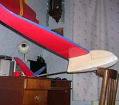 В конце прошлого года наткнулся на эту ветку и решил, что это самое то для новичка, уставшего от “диких” моделей, летающих на тяге винта, поэтому принялся за работу. Поскольку начало было несколько спонтанно, то в качестве хвостовой балки использовал П-образный профиль, оставшийся от постройки предыдущих алюминиевых монстров. Для облегчения засверлил его, сзади сточил на “ус”. Дальше пошёл танцевать от этого профиля. В крылья решил деревянного лонжерона не делать, поскольку углетрубка метровой длины, плотно вставленная в пенопластовый пенал потолочного лонжерона дублирует его функцию. Общие характеристики получились следующие: размах - 1530 мм, площадь крыла - 24,5 кв. дм., вес пустого 410 гр (без акб, мотора и приёмника), взлётный - 680 гр. Мотор - турнига 28-30 1050 об/в, винт АПС-8/5, акб - 2200 ма.ч. К сожалению, из-за недостатка времени не успел до нового года подсоединить хвостовую тягу к рулям высоты, поэтому в ближайшие дни вклею кабанчики, и попробую, если позволит погода, подлетнуть. Есть некоторые сомнения, поэтому хочу задать несколько вопросов: