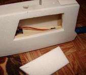 На морде наклеен солидный кусок шарикового пенопласта (технологическое отверстие возможно пригодится для балласта хотя с аккумулятором 3700мА/ч походу не понадобится)