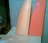 Крылья делаю как у Грини с законцовками. В фюзеляж из двух слоев потолочки встраиваю 2 лонжерона из линеек. Вместо пластика и дерева пробую использовать какой-то ужасно твердый пенопласт (что интересно циакрил его не жрет).