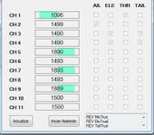- Make configure servos wizard. Verify that wizard detect two channel movement when test aileron & elevator. See text when finish at boton of wizard.