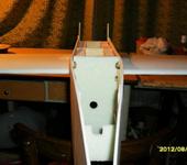 Хвостовая балка закреплена на двух деревянных шпангоутах, приклеенных к идущим вдоль всего потолочного фюзеляжа сосновых стрингерах , шпангоуты разгружены пенопластовыми вставками внутри фюзеляжа. Эти элементы конструкции находятся внутри , и на данный момент их не видно (пока не прорезаны лючки в фюзеляже для доступа в “грузовой” отсек -под центропланом). Характерный элемент-отверстие и вырез в переднем 1ом шпангоуте, видные на 3 ей фотографии справа-технологические - я монтировал хвостовую балку, протаскивая её вдоль всего фюзеляжа-фиксация получилась надёжная.