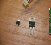 Первым что сделал, выпаял плату из корпуса и проверил питание после стабилизатора. Нет напряжения. Понятно. Стабилизатора в таком корпусе на 8 вольт у нас не найдёшь, но есть 7808, а с помощью бормашины дорабатывается до нужного размера. Опыт есть, в нижнем передатчике после взрыва тантала и выгорания штатного стабилизатора именно такой, отшлифованный и стоит. На фото до и после.