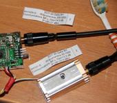 Попробовал - не выходит каменный цветок. Там на входе оконечника 0 ом резистор, отпаял его, впаял штырек. Удалось получить прекрасное изображение - но на передатчике стоял 15 канал (1280мгц), на приемнике - 21 (1380mhz). Видимо, проблема где-то с синтезатором. С утра надо будет посмотреть, что кварц выдает. Хотя с чего это кварц уплыть может за 5 минут работы? Что-то не склеивается все. И приборов на такие частоты под рукой нет 😦