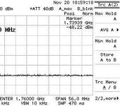 Схема измерения прежняя. Уровень полезного сигнала на входе приемника порядка -90-100 дБм (на анализаторе -60-70 дБм) . Без помехи приемник уверенно ловит сигнал.