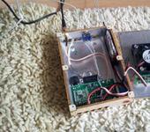Разобрался быстро, т.к. имею Тини ну и соответственно опыт прошивки и т.д. Потестил и блин греется оно на 4Вт прилично. Понимаю, что летать постоянно на такой мощности не буду, но для перестраховки сделал как с Тини… корпус - кулер - вольтметр - ретрансмиттер. Корпус из 3 мм фанеры, изнутри оклеен алюминиевым скотчем для экранирования. Кулер на 12В 50х50х10 с током потребления 150мА.