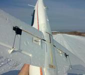На днях попробовал пустить с руки, вместо шасси загнуты стойки (чтобы и в кусты мог садится не гнув шасси). Перед этим забыл поднять руль высоты для ровного полета , но при этом взлетел, правда в первой части полета тянуло самуль в низ пока не отремировал. Так же протестил только что собранные антенны клевер, давая крены в полете. Посадка была при боковом сильном ветре, все хотело снести в сторону, не хватало руля направления для поправки при посадке. Долго не смог летать, руки колом встали.