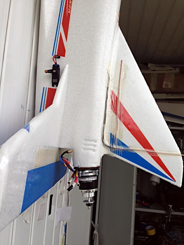 Поворотка двухосевая стоит, только ее не хватает, нужен увеличитель хода сервы. Мелкой камеры, чтоб налепить на фюзеляж нет. Крылья неразборные, склееные, но без ламинации и прочих усилений, раза по три каждое ломано в 5 -7 см от фюзеляжа, но все склеено нормально. При визуальных пролетах болтанки крыльев не видно.