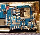 Запаха, дыма, звуков не наблюдал при этом. Осмотр тоже ничего особенного не выявил. Есть подозрения на одну деталь, указал стрелкой. Она без признаков горения, но на ней обнаружил вещество, темно-коричневое/густое/вязкое, возможно просто капля канифоли. Больше ничего подозрительного не увидел…
