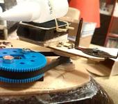 Система состоит из Ф 43 мм большой шестерни (на серве) и зубчатоременного привода на Ф 8 маленькую. Маленькая поворачивает платформу с блоком курсовой камеры и Мёбиуса. Платформа сбалансирована, ничего не трётся, не задевает.