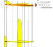 Подробности: крыло и стабилизатор взяты всё с того же планера «fantasy angel». Компоновка была определена желанием максимально разнести антенны видео передатчика и приёмника управления. Сейчас на нем установлен складной пропеллер, с шайбой, предохраняющей от складывания лопастей на одну сторону. Низ фюзеляжа зашит 1 мм фанерой ввиду отсутствия других посадочных устройств (чтобы нормальному полёту ничего не мешало). Вес без батареек 980г. Размах 1760 мм. Изначально представлял проект как то так… А вышло то, что вышло, и это один из немногих проектов за последнее время имеющий чертёж…
